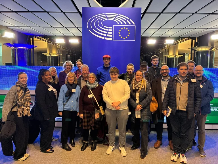 Gruppenbilder aus dem EU-Parlament. Links mit Nela Riehl im Fraktionsraum und rechts die Voltis aus dem Münsterland die teilgenommen haben.