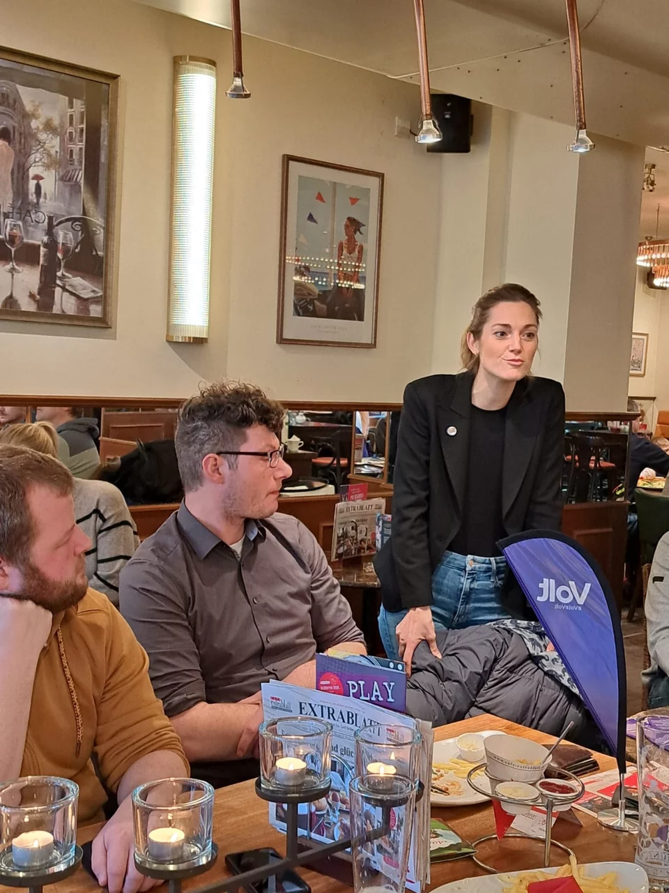 Politisches Forum zum Thema Digitalisierung und Umwelt mit Frances Noltekuhlemann im Extrablatt (stehend)