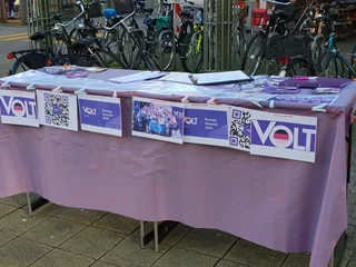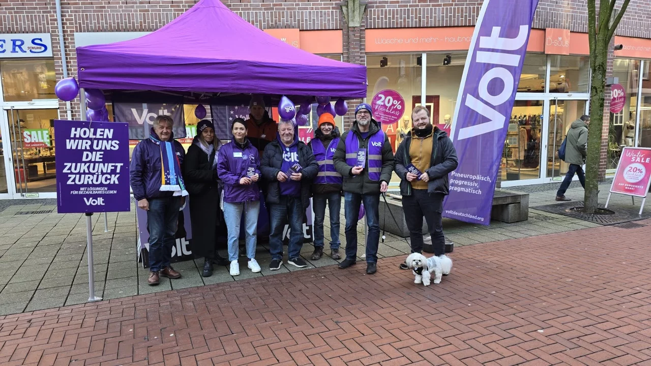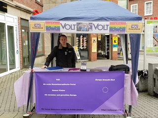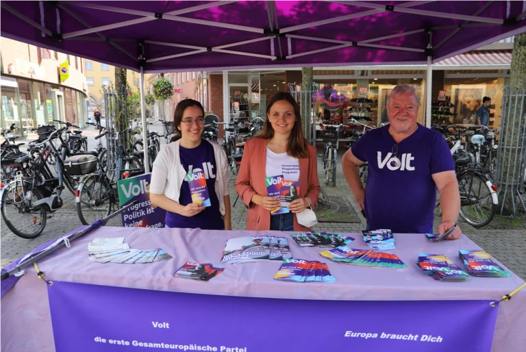 Wahlstand in der Kupferstraßeunter anderem mit Nanda Pastoor vom Volt-Team Achterhoek (NL) Bild Mitte