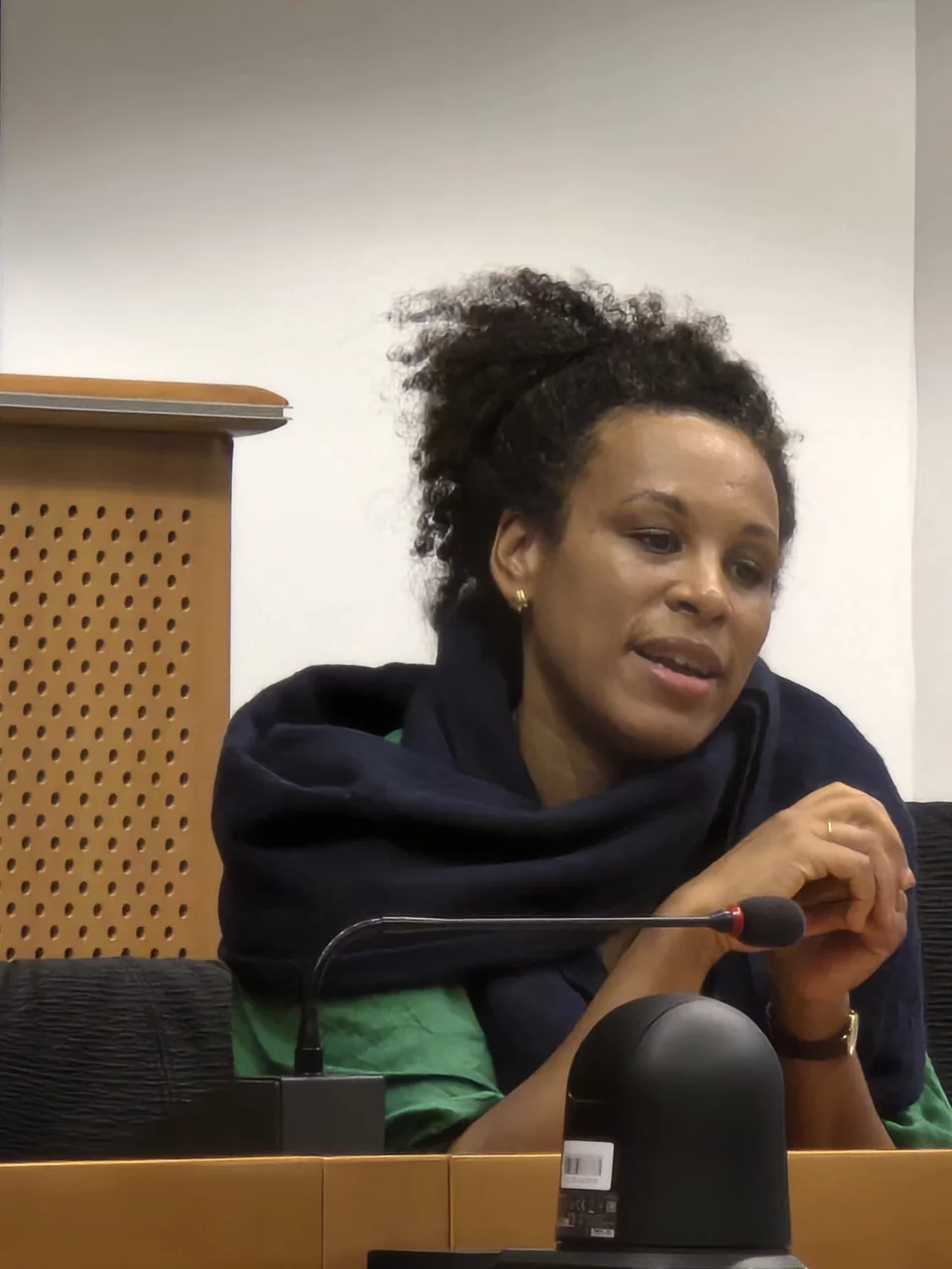 links: Nela Riehl erklärt ihre Arbeit im EU-Parlament. rechts: Franz Lenhard im Gespräch mit Nela Riehl.